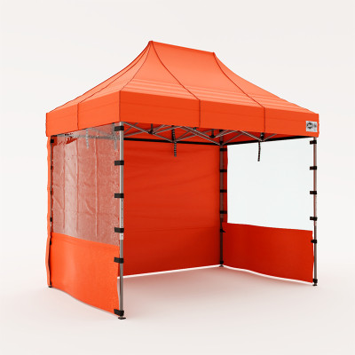 Las carpas Araña cuentan con mástil en su centro para lograr apoyo de la lona. Desplegadas captan la atención por su gran impacto visual, tanto estético como por su dimensión, que según la medida referida aumenta progresivamente los m2 de tamaño. De esta manera se logran grandes amplitudes, coberturas, y lógicamente varía su uso. Admite personalización (consultar particularmente).